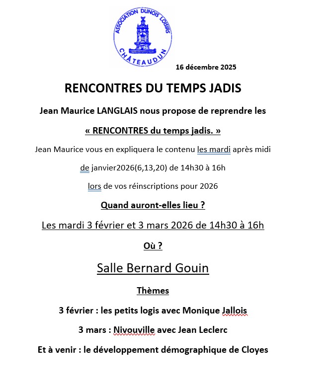 RENCONTRES DU TEMPS JADIS